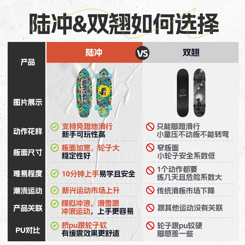 乐秀陆地冲浪板儿童滑板车6到12岁女生成人专业男8陆冲板滑板儿童