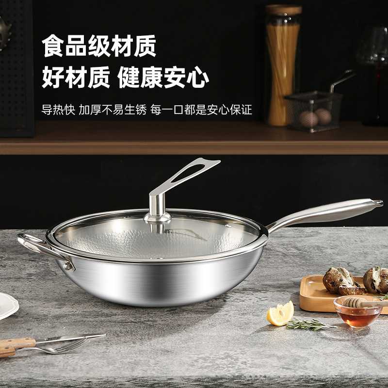 德国钛炒锅无涂层钛锅不粘锅鱼鳞锤纹钛煎锅钛合金家用平底炒锅