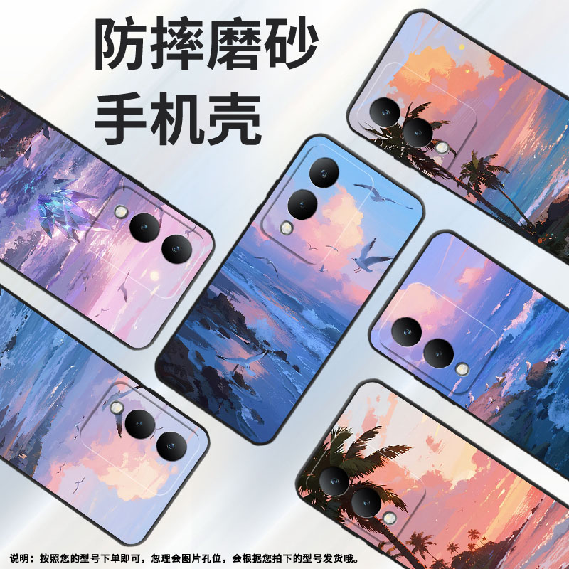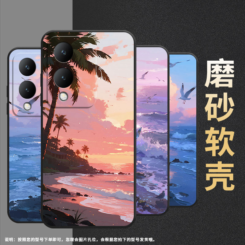 适用vivoY17手机壳Y21S防摔V2350黑色viviY20i高级感Y20商务海岸线风景简约V2027保护套Y27硅胶Y29时尚软壳