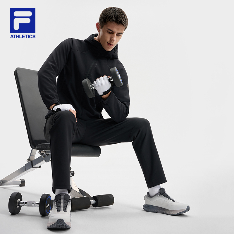 FILA 斐乐官方男士梭织外套2025冬新款健身运动基础加绒连帽上衣