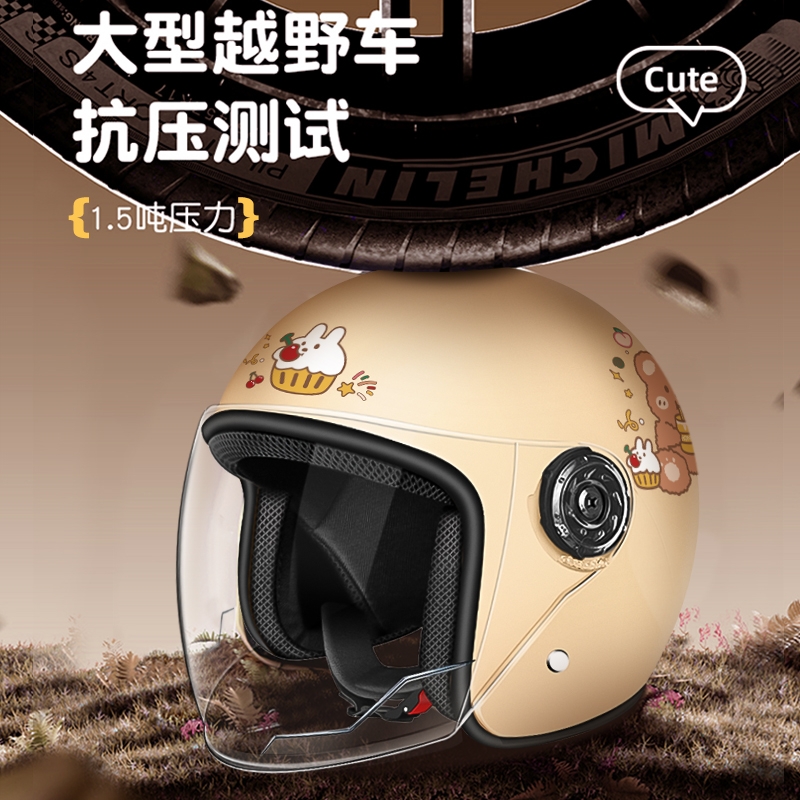 新款野马头盔3C认证电动摩托车女士四季半盔男夏季防晒轻便安全帽