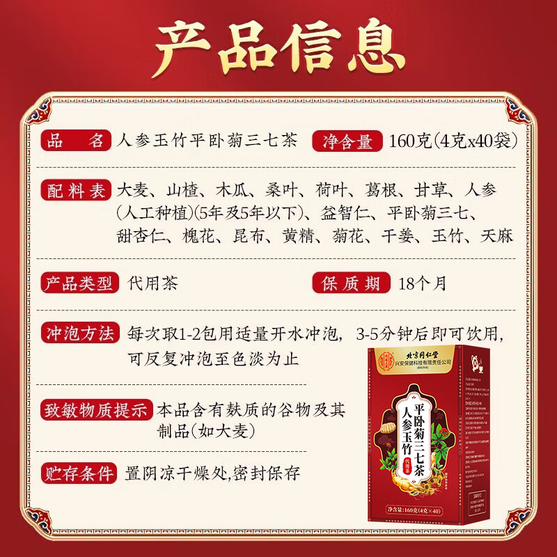北京同仁堂九宝五宝八宝人参枸杞六宝桑葚茶男士养生茶官方旗舰店