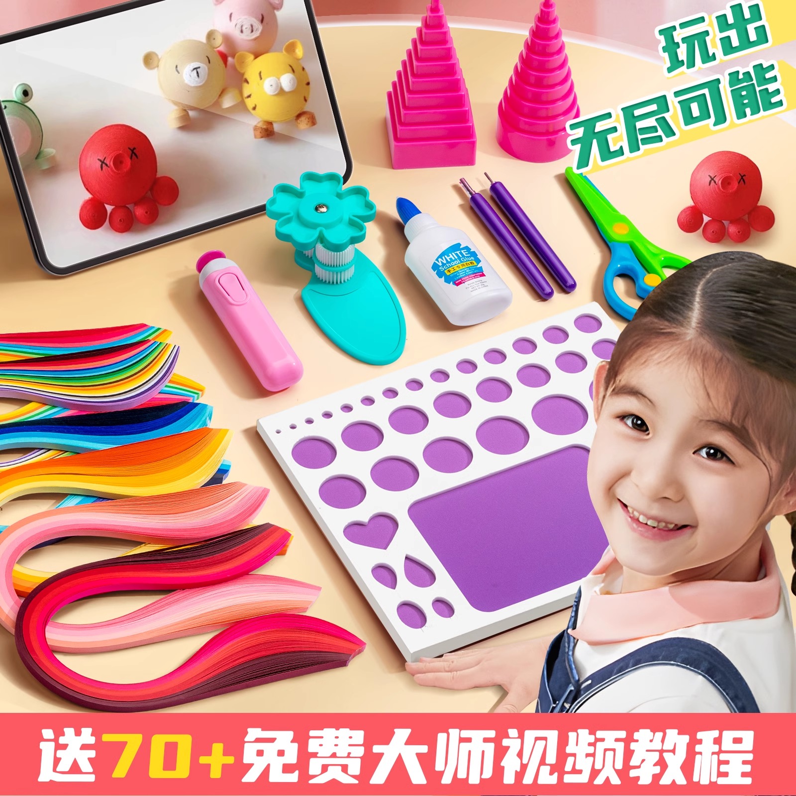 制作幼儿园手工初学者材料包儿童diy工具收纳盒衍纸小学生彩色折纸衍纸画衍纸条相框作品全套玩具