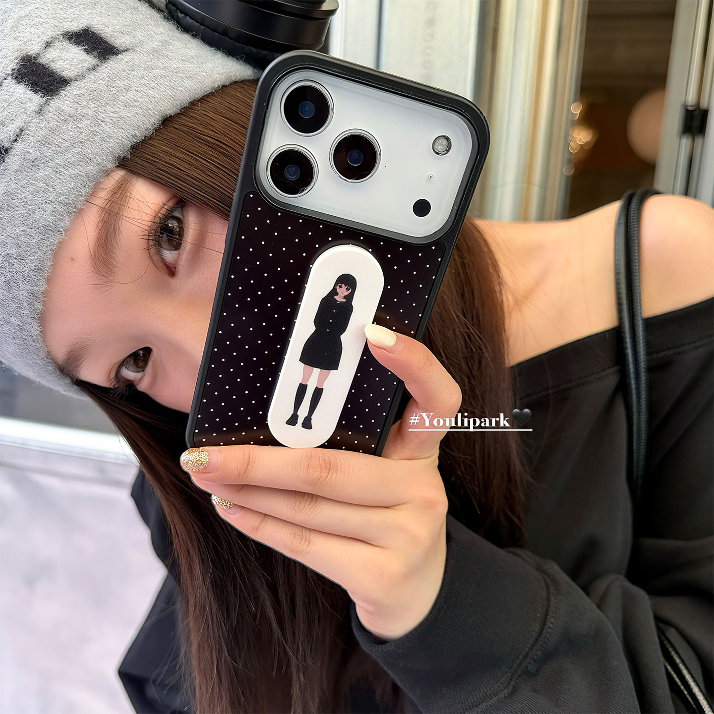 由里公园ins日系古早波点动漫少女创可贴支架适用17pro苹果17ProMax手机壳iPhone16全包14新款16Promax保护套
