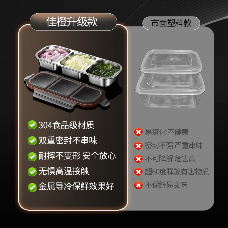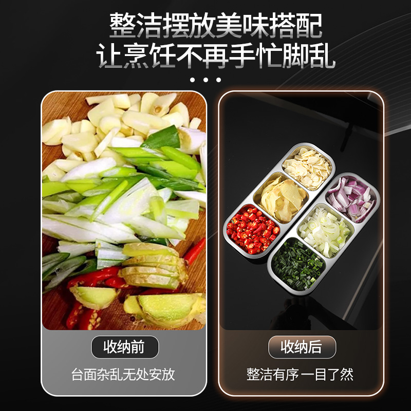 葱姜蒜备菜盘分格304不锈钢食品级配菜神器收纳保鲜盒密封防串味