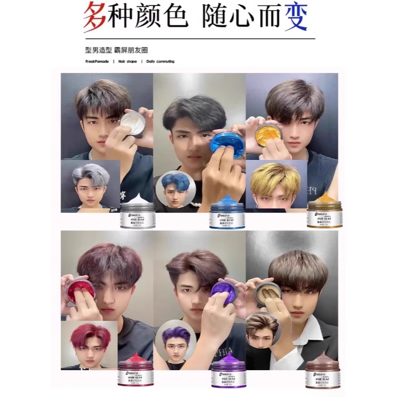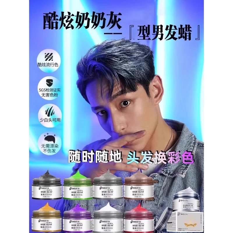 可洗染发膏奶奶灰发泥男士一次性发蜡彩色灰色白色定型蓬松造型发