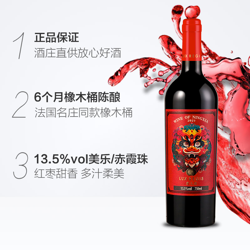 类人首 宁夏红酒贺兰山东麓龙腾美乐橡木桶干红葡萄酒750ml*6支装
