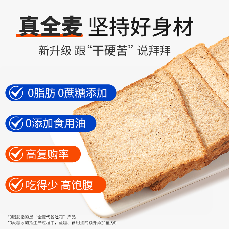 奇亚籽黑全麦吐司面包片代餐饱腹低无蔗糖脂肪小零食小吃休闲食品