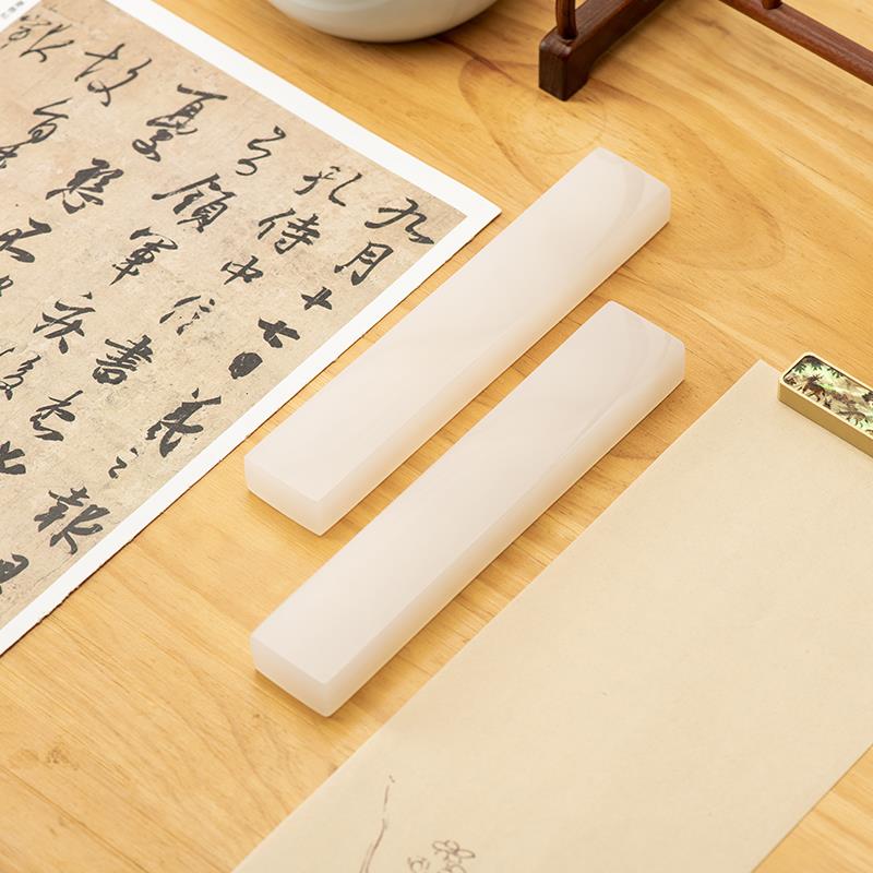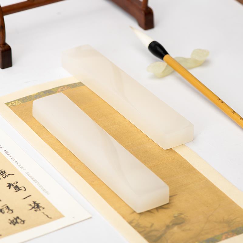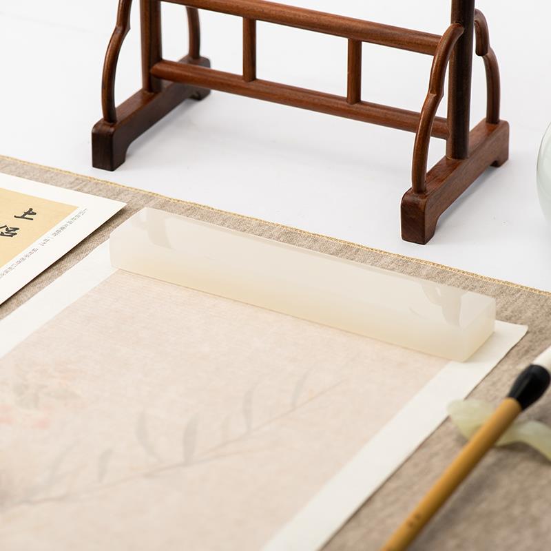 适意月沉白玉玉石镇纸阿富汗白玉镇尺高档文房雅器书法镇纸压宣纸