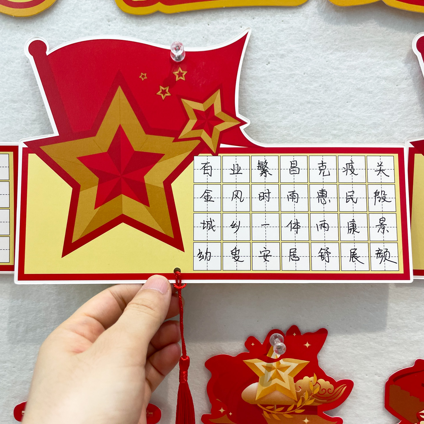 创意国庆节五角星爱国硬笔书法作品纸空白手写祝福祖国心愿红色贺卡班级布置主题祈愿墙书写古诗练字彩色卡纸