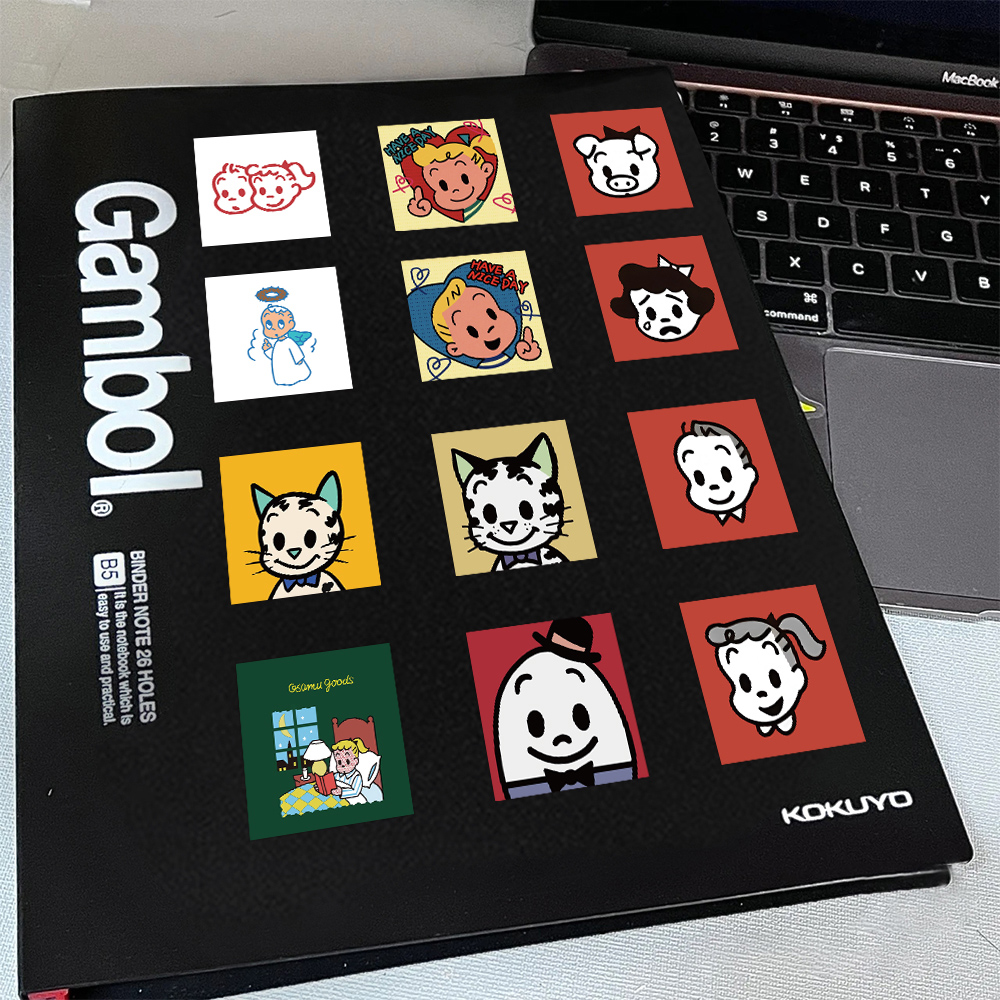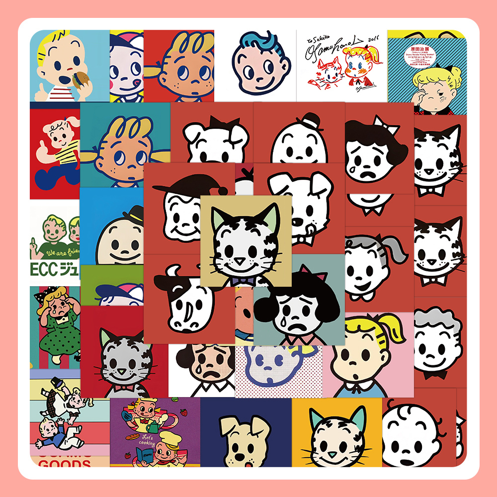 126张原田治风格贴纸ins风高颜值韩系卡通可爱彩绘图案装饰小贴画