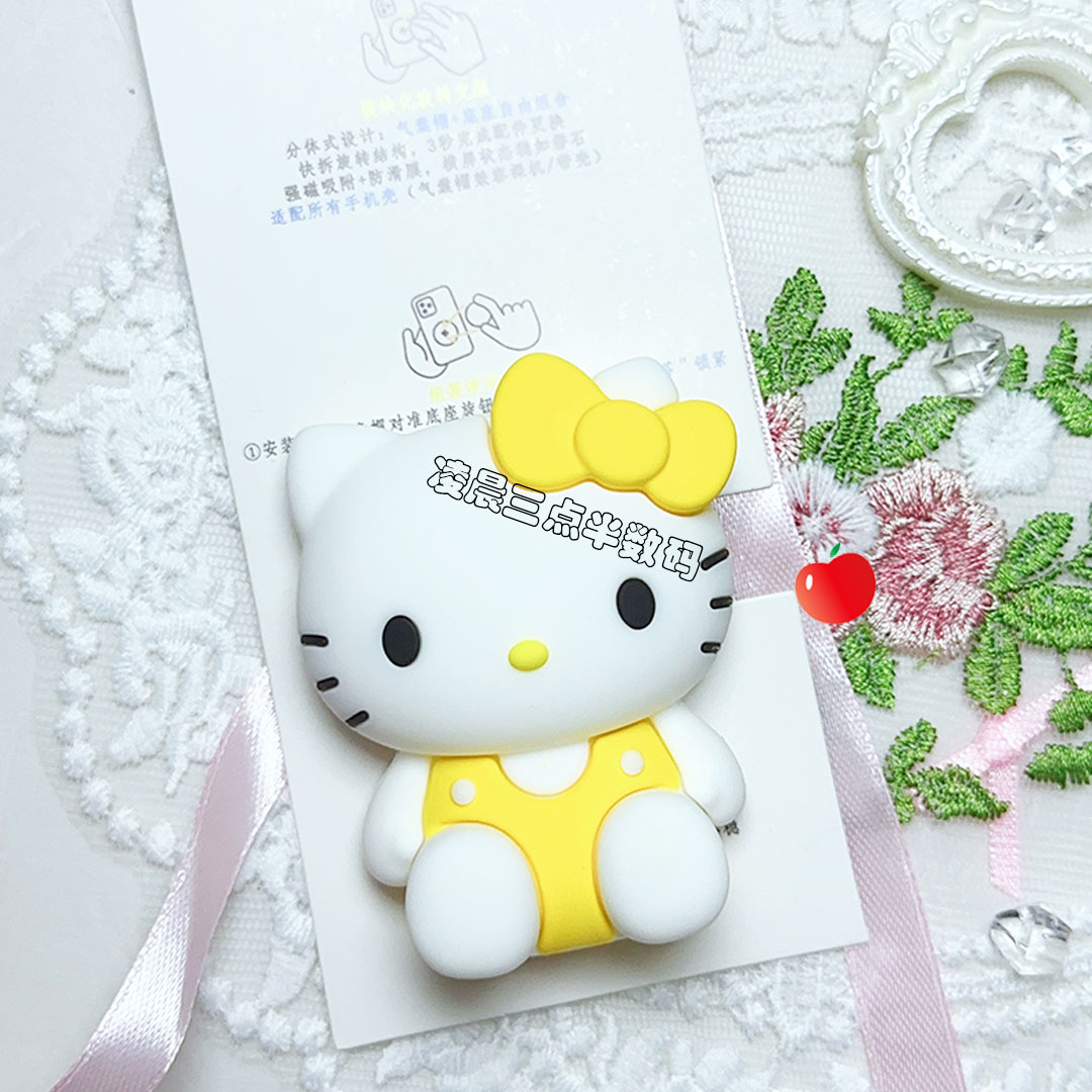 泡泡骚通用硅胶立体坐姿Hellokitty凯蒂猫磁吸手机支架气囊伸缩