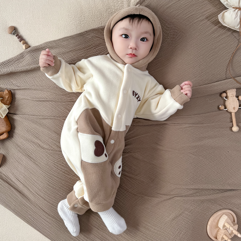 新生婴儿衣服夹棉连体衣摇粒绒宝宝保暖加厚卡通爬服洋气可爱棉服