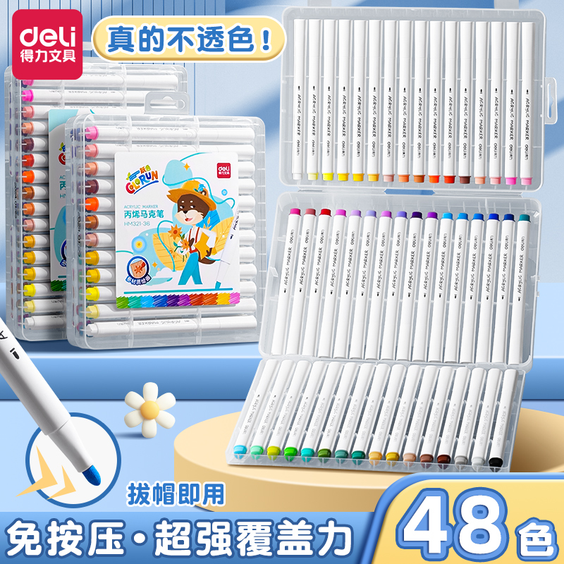 得力丙烯马克笔小学生专用不透色可叠色画笔儿童无毒水彩笔美术笔芯画画炳稀彩笔可水洗丙稀比心彩幼儿园工具