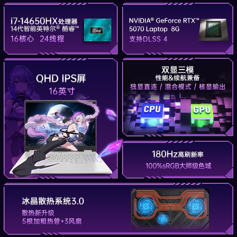 【全国多地补贴再降20%】Colorful/七彩虹 隐星G16 酷睿14代i7-14650H RTX5070新款独显直连电竞游戏本