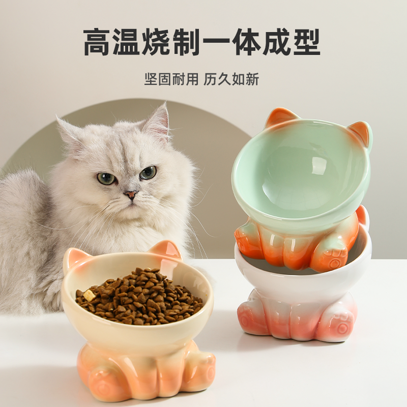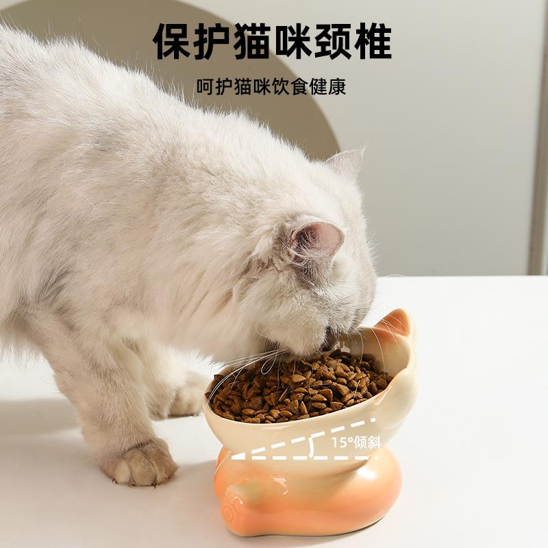 渐层猫碗陶瓷保护颈椎猫咪碗猫食盆水碗猫盆狗碗斜口宠物碗防打翻