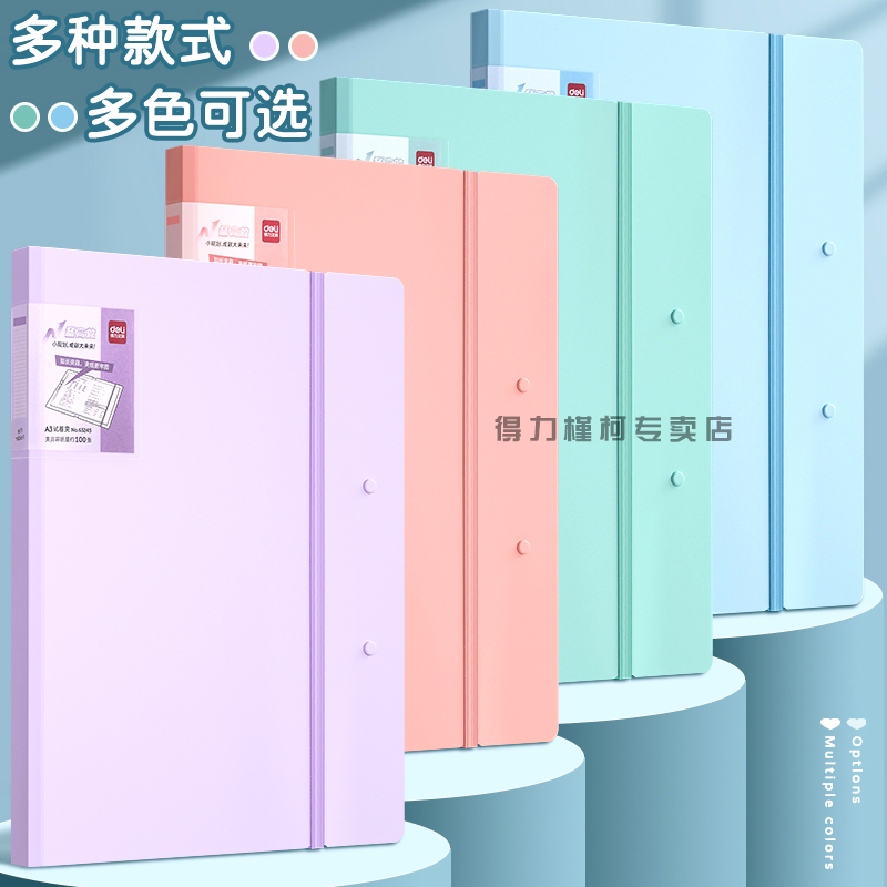 得力A3试卷夹试卷收纳袋卷子整理夹初中生高中生专用分类小学生加宽大容量文件夹加长压夹资料档案书夹子活页