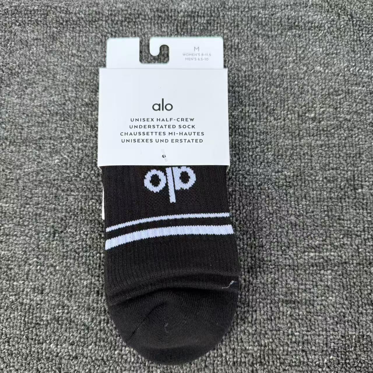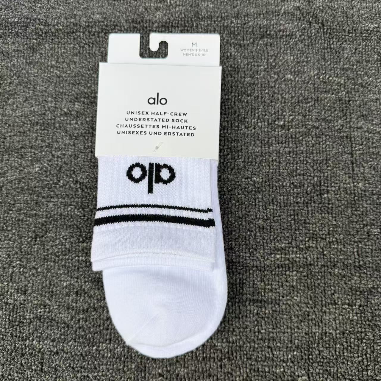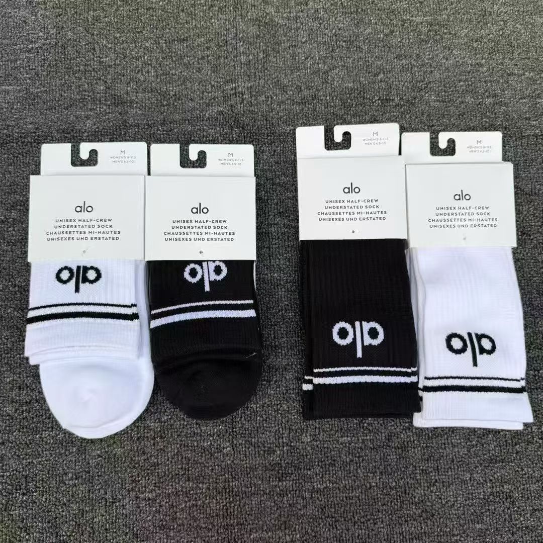 alo袜子女中筒纯棉毛巾底运动袜瑜伽健身普拉提网球长袜配鲨鱼裤