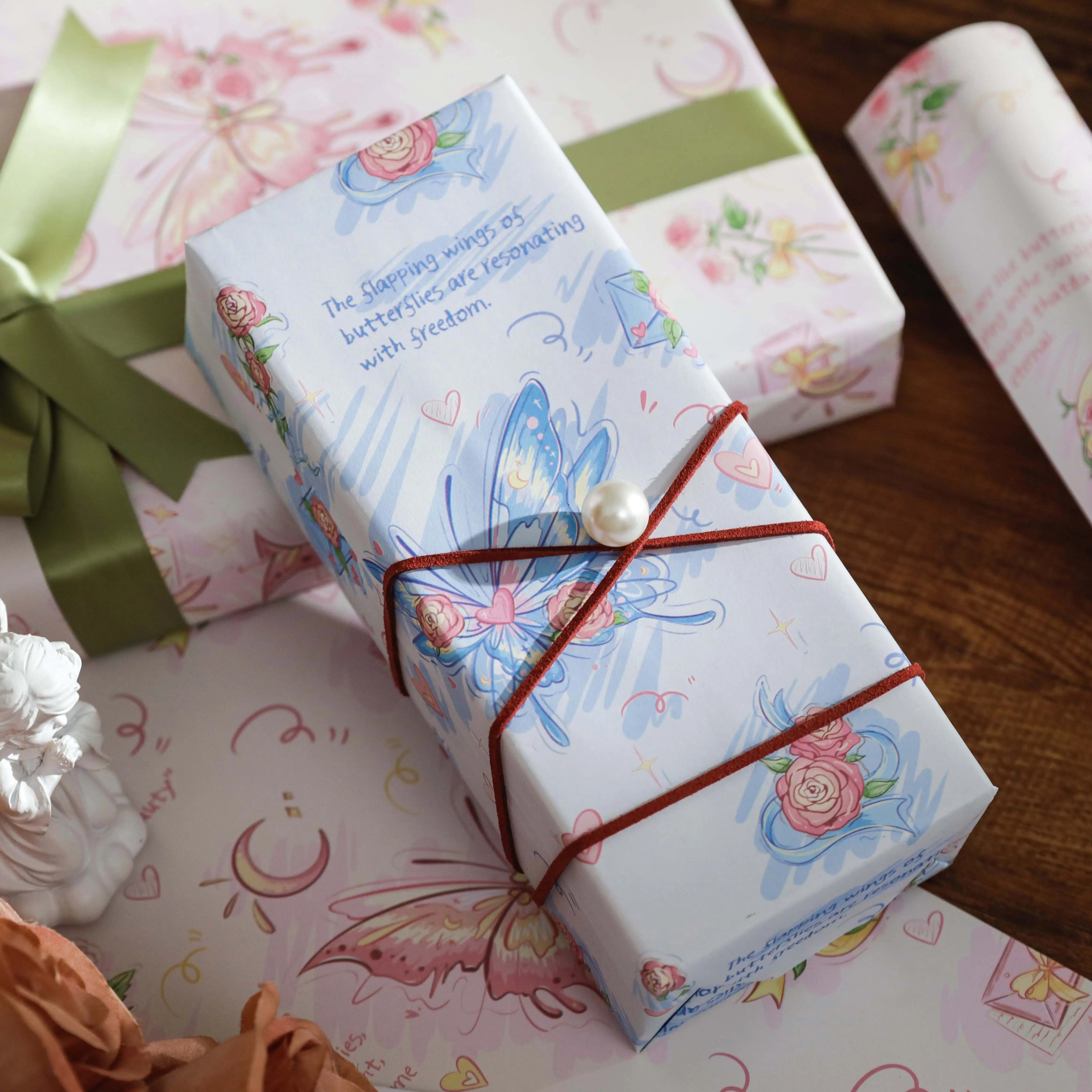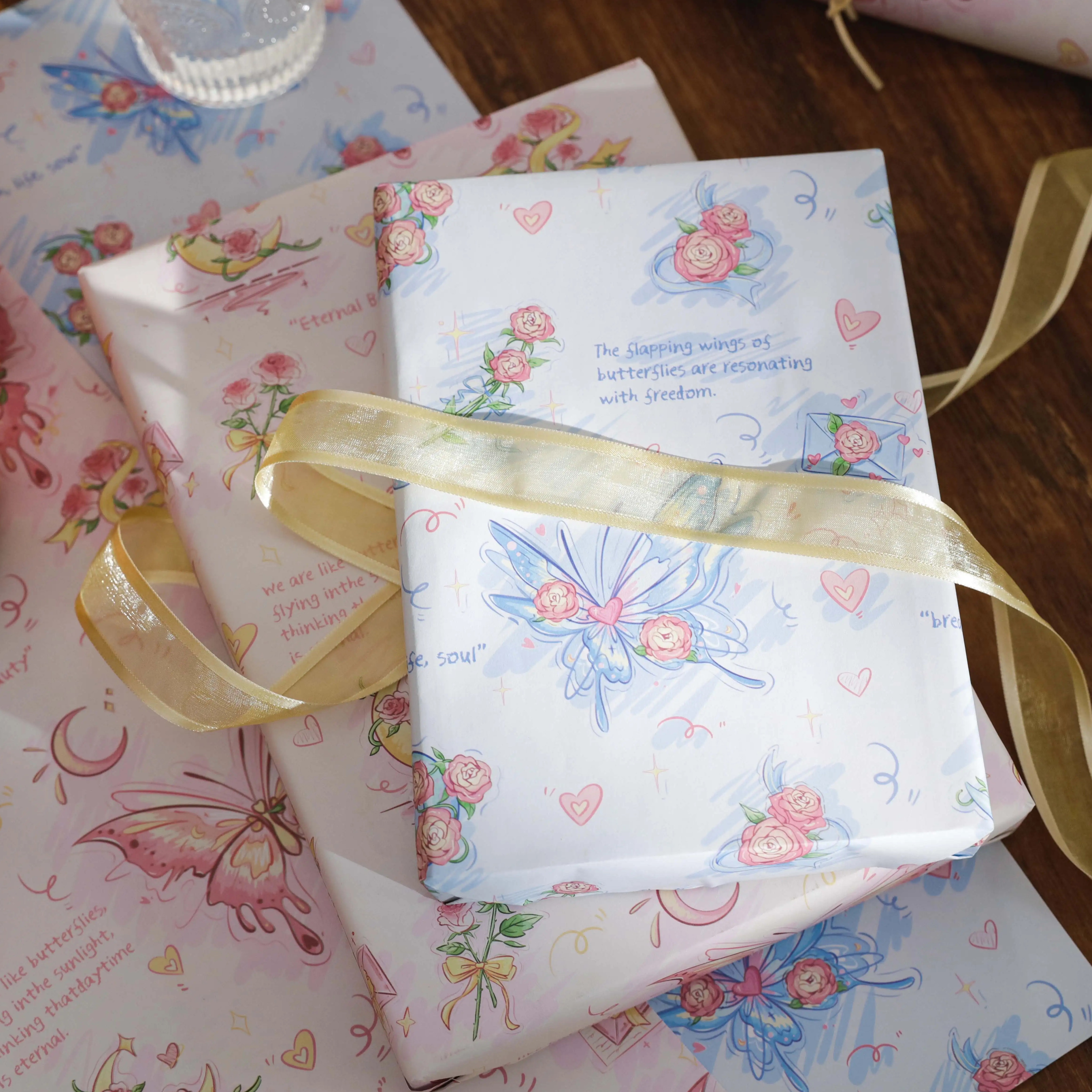 冠淘玫瑰蝶影大张礼物包装纸高颜值可爱生日礼品礼物包装书皮纸花束包装可爱少女心书皮纸大张礼品纸