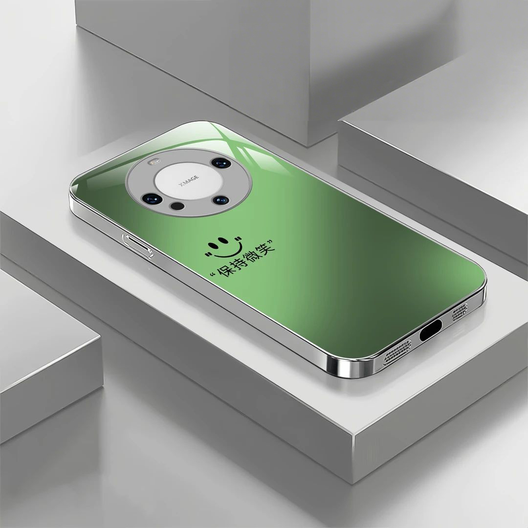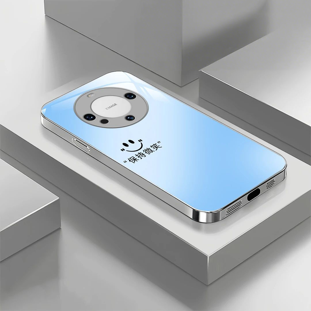 笑脸保持高档金属漆玻璃壳适用华为Mate60Pro手机壳新款mate60网红励志全包防摔外壳50/40个性创意男女保护套