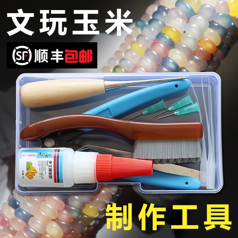 热销文玩玉米制作工具包七彩玻璃宝石玉米加固胶水花托配件配饰