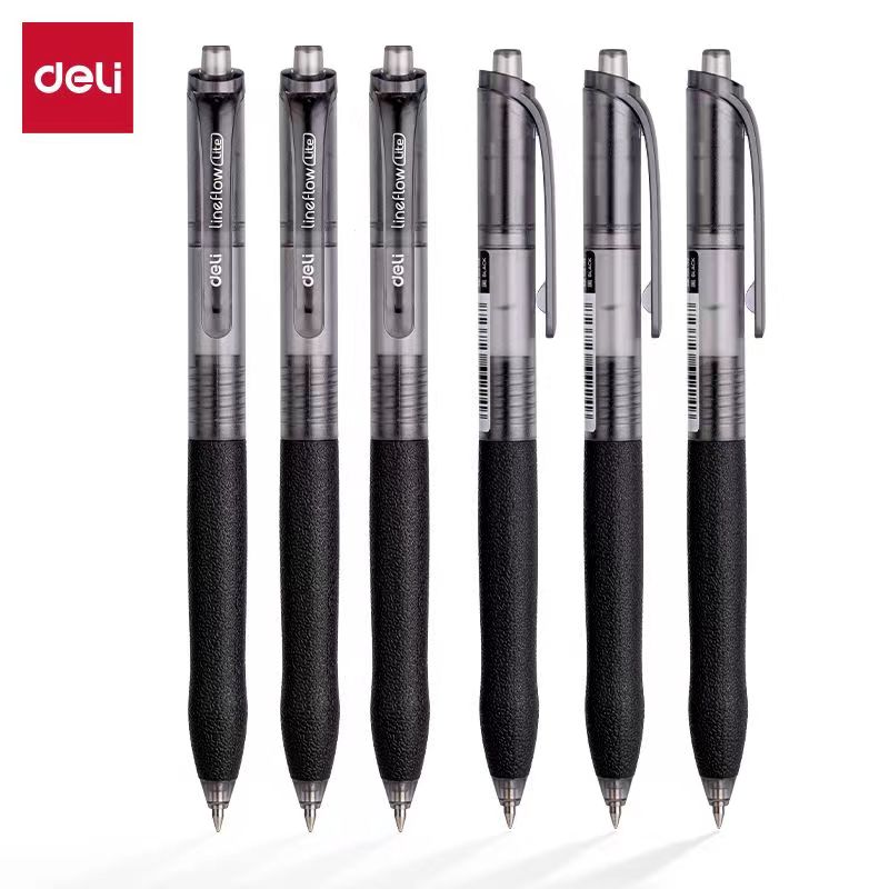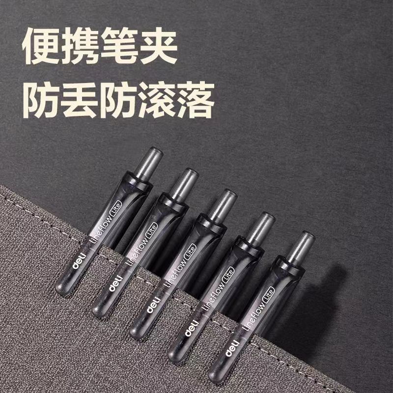 得力直液式走珠笔速干大容量直液笔0.5黑色中性笔学生用速干刷题笔水性笔直液笔圆珠笔商务办公简约风笔杆