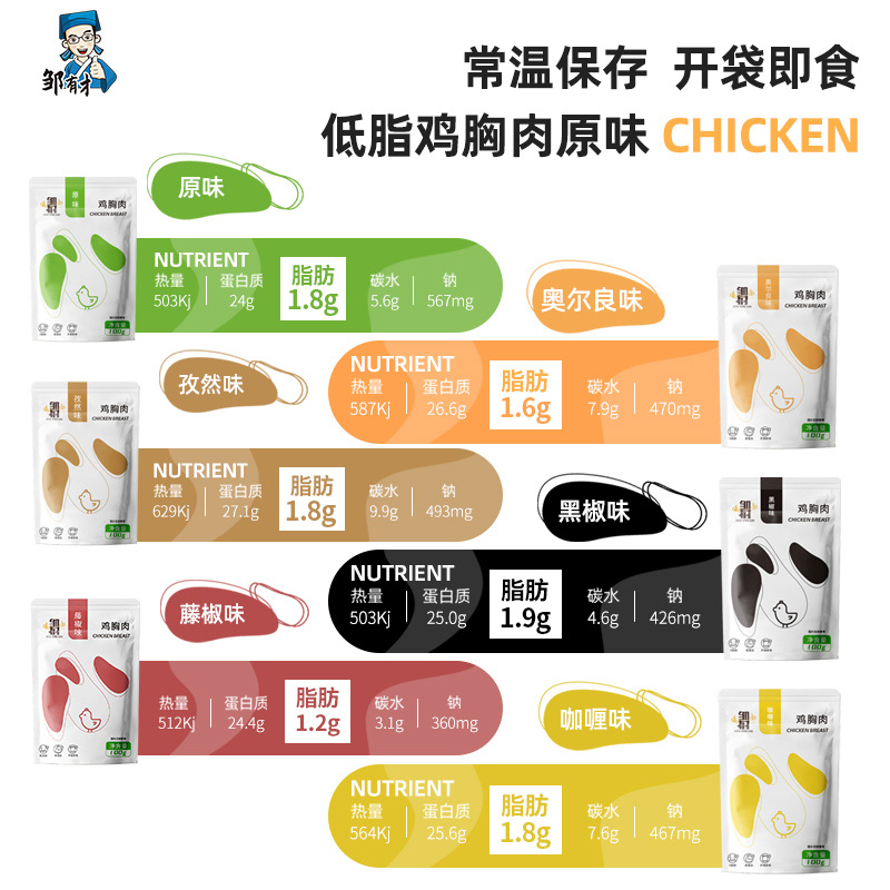【20包】 低脂肪速食鸡胸肉鸡肉食品健身轻食代餐开袋即食减零食