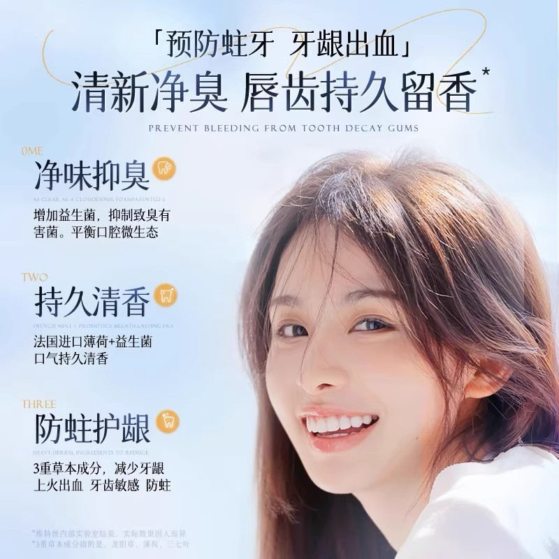 小苏打美白牙膏益生菌去黄口除臭长效清新口气学生防蛀去烟渍结石