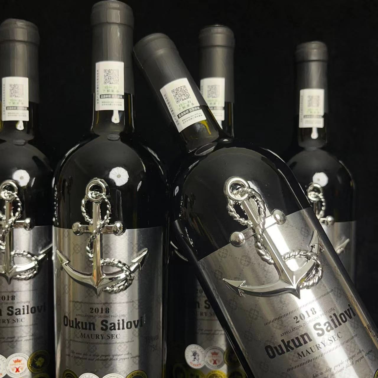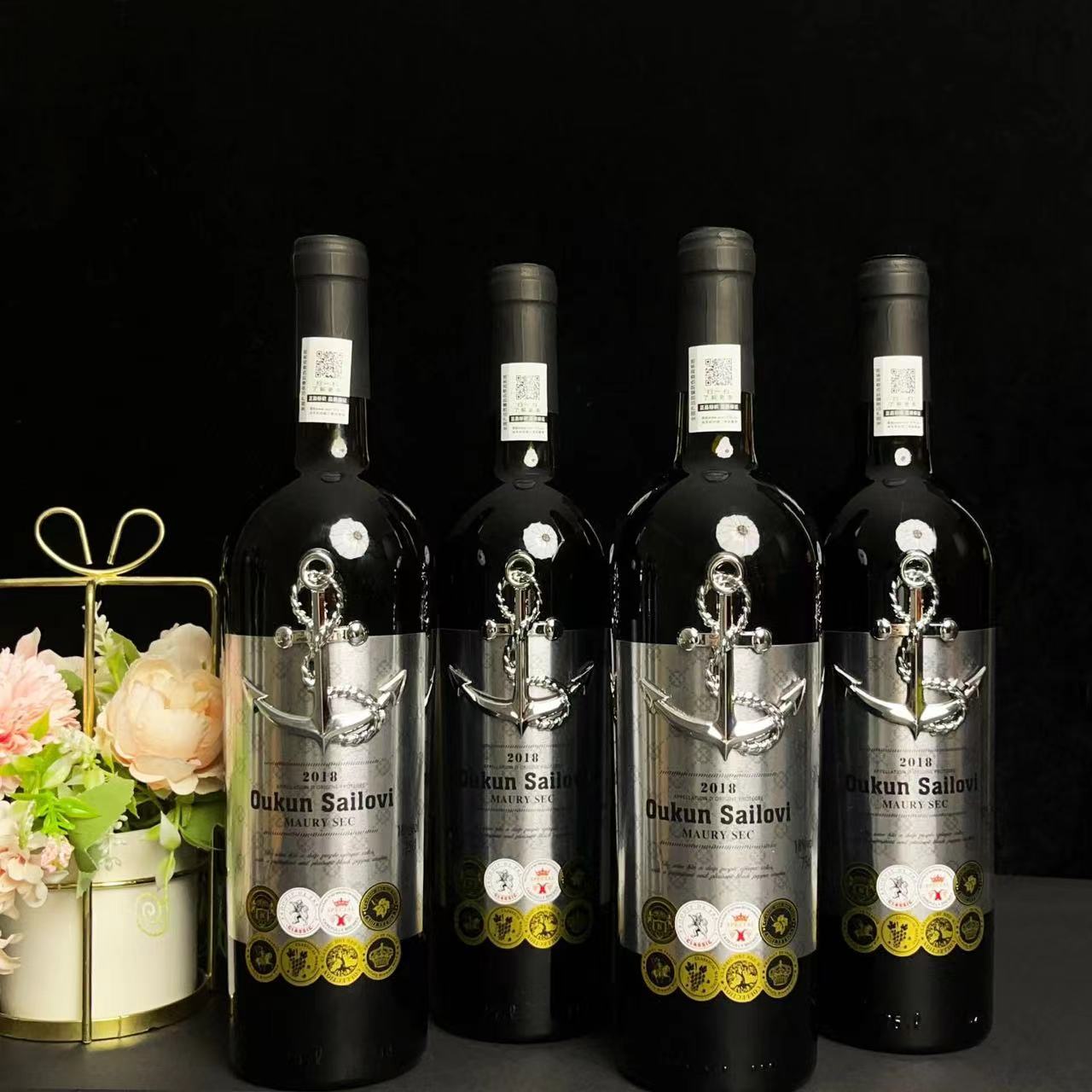 法国最高18度 欧昆·赛乐维AOP莫利干红葡萄酒双支烤漆木盒批发