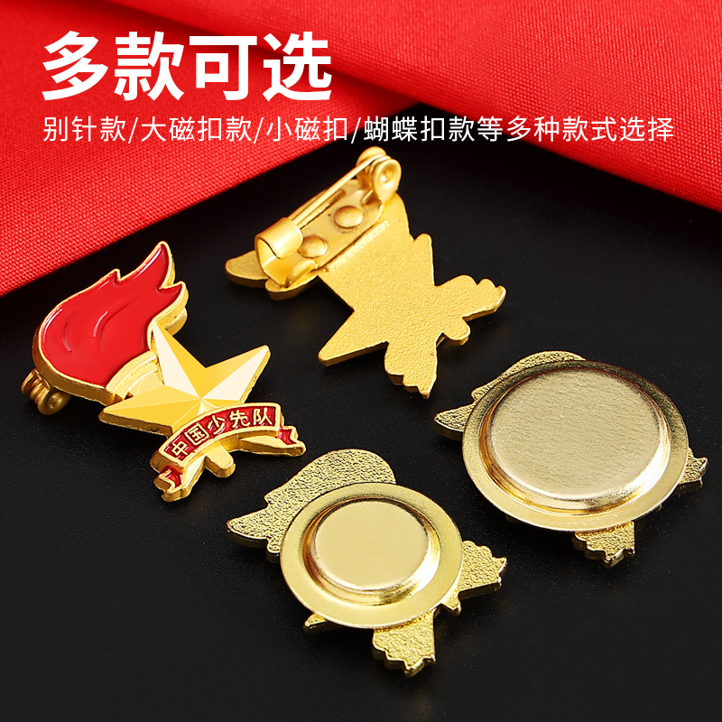少先队员徽章标准型少年先锋队队徽中国新款小学生安全别针胸章儿童磁铁胸针磁吸对辉红领巾蝴蝶扣不褪色磁扣