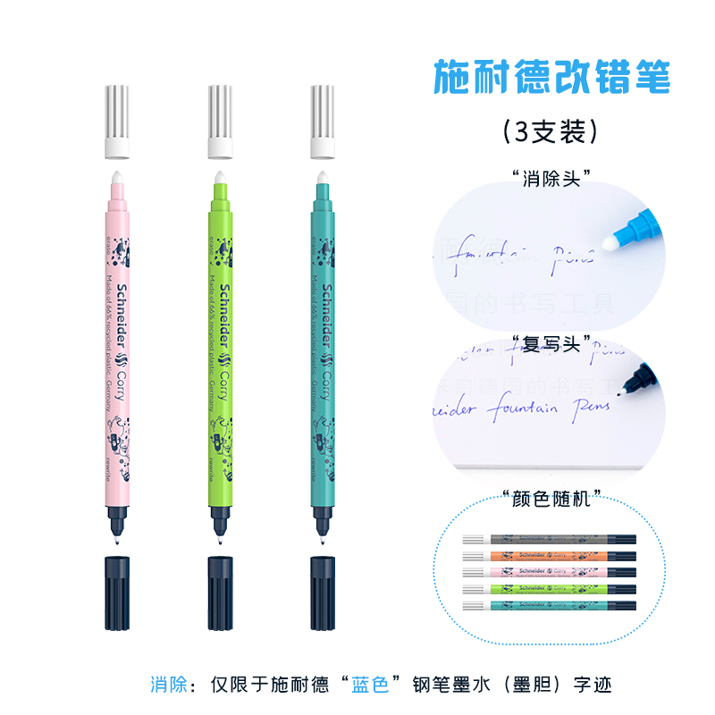 德国进口Schneider/施耐德改错笔 无痕消字修正涂改 不可反复 可擦笔消除笔限施耐德蓝色墨水钢笔擦 擦得干净