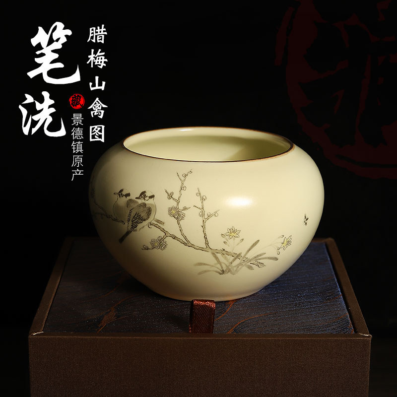陶瓷水盂洗笔缸笔洗笔缸国画y笔洗缸装墨汁水碟墨碟墨条磨墨加水