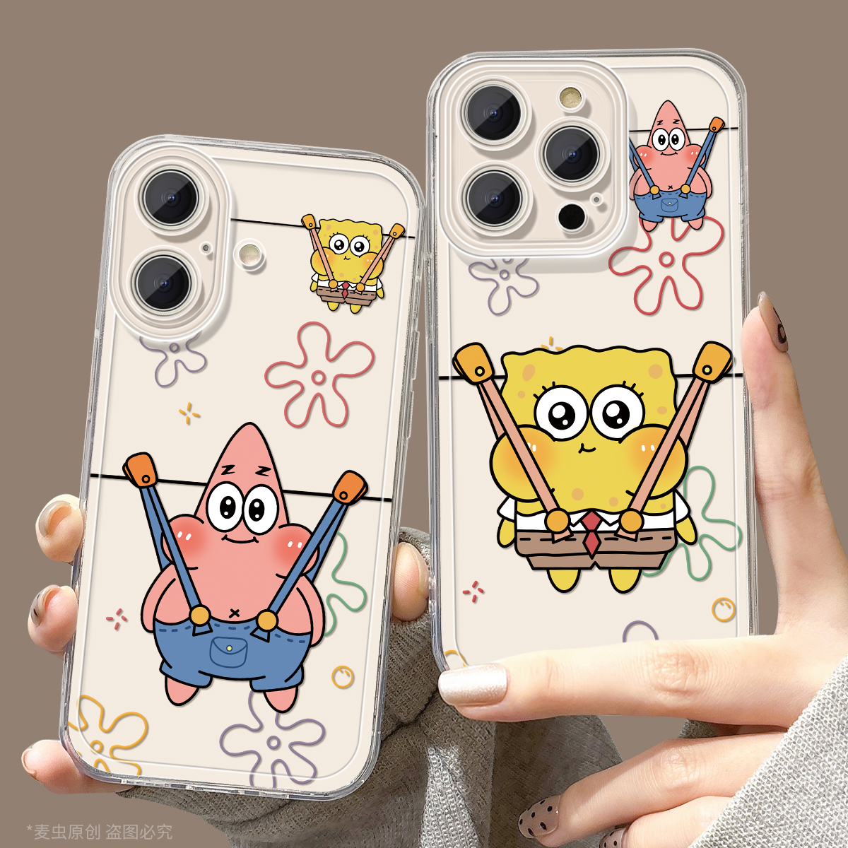 麦虫适用于苹果17手机壳iphone16新款15Pro海绵宝宝11透明plus超火max全包12防摔14Pro软xs高级x套15promax