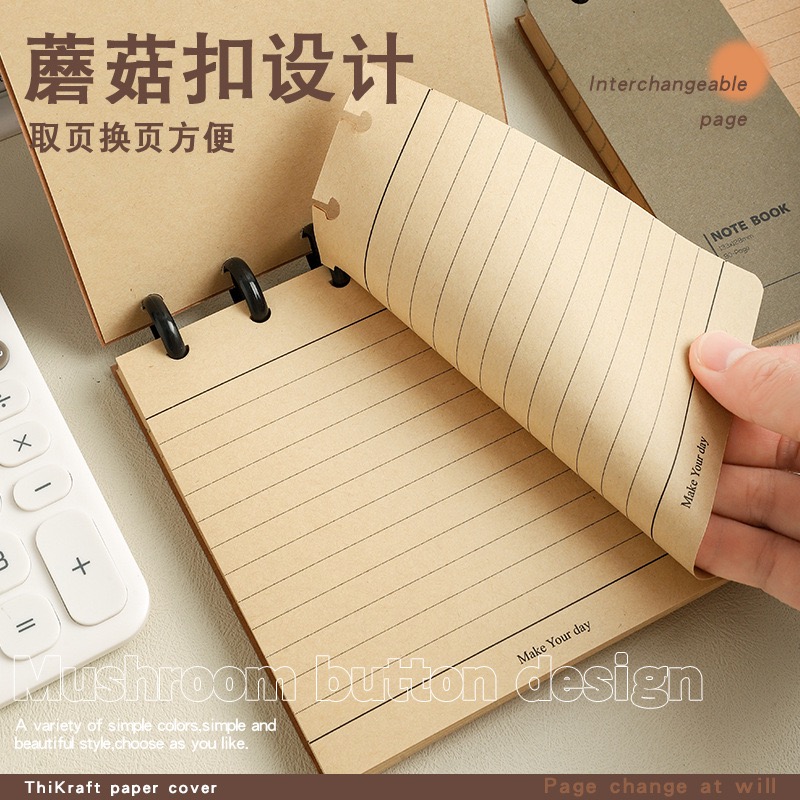 便携小笔记本牛皮本可拆卸复古口袋本蘑菇孔活页方形小号迷你记事本备忘录随身记身便签本加厚横线内页小本子