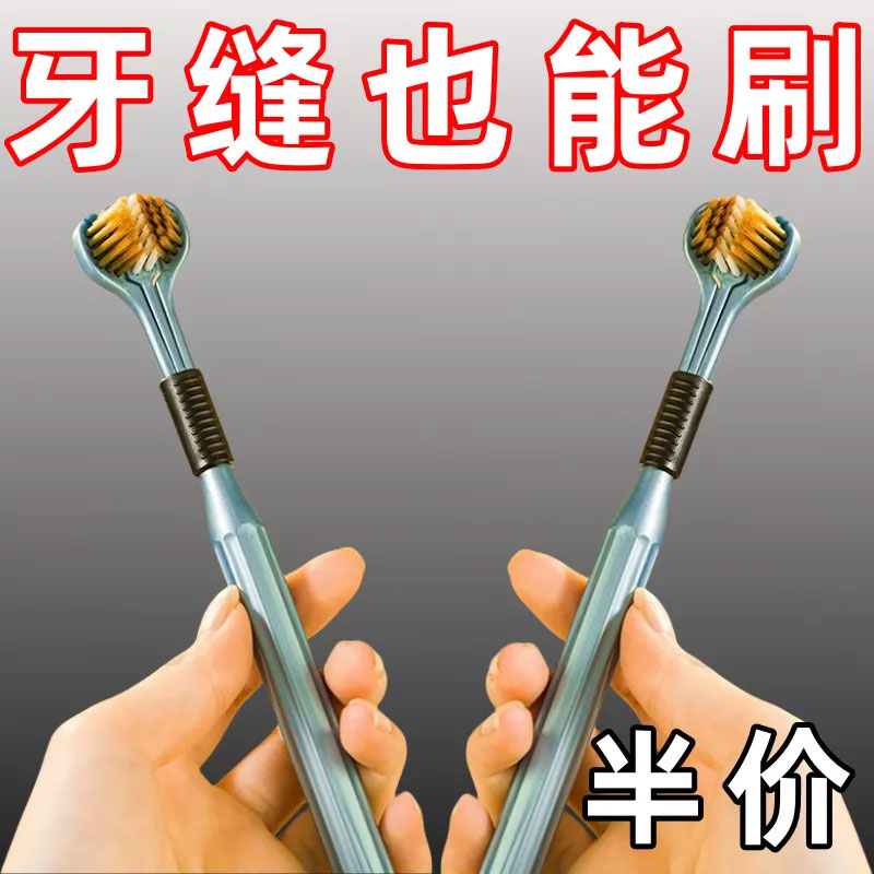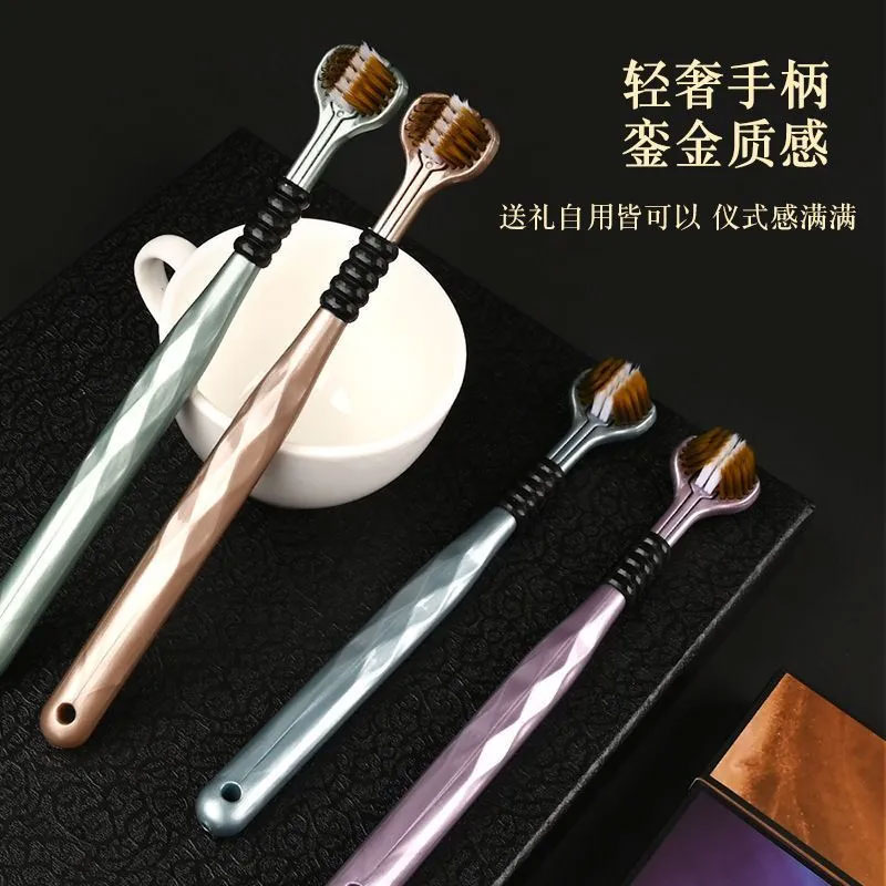 三面软毛牙刷360度家庭装成人家用去渍学生牙缝清洁舌苔三头牙刷