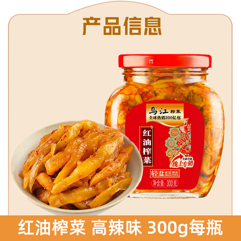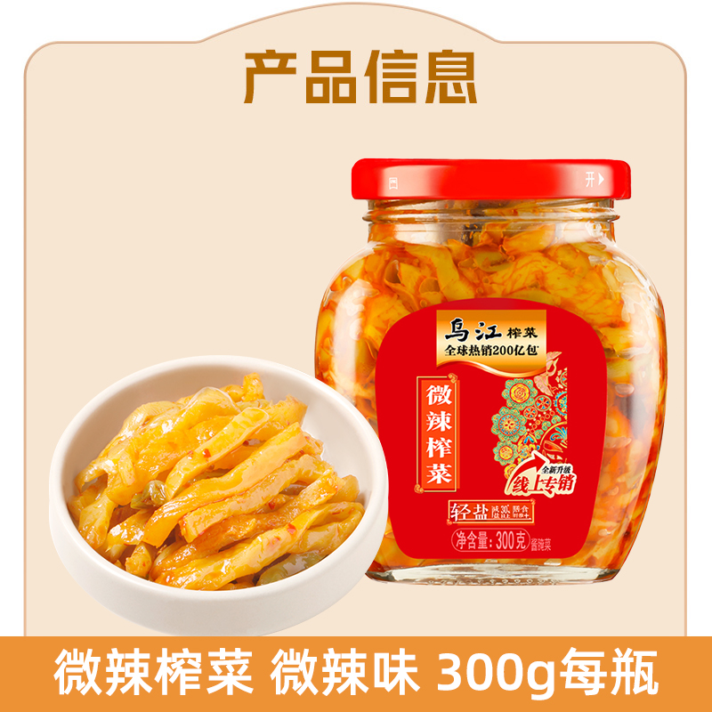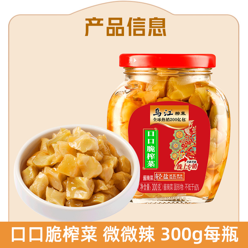 乌江榨菜口口脆瓶装微辣红油清淡脆嫩开味泡菜下饭菜芯块300g