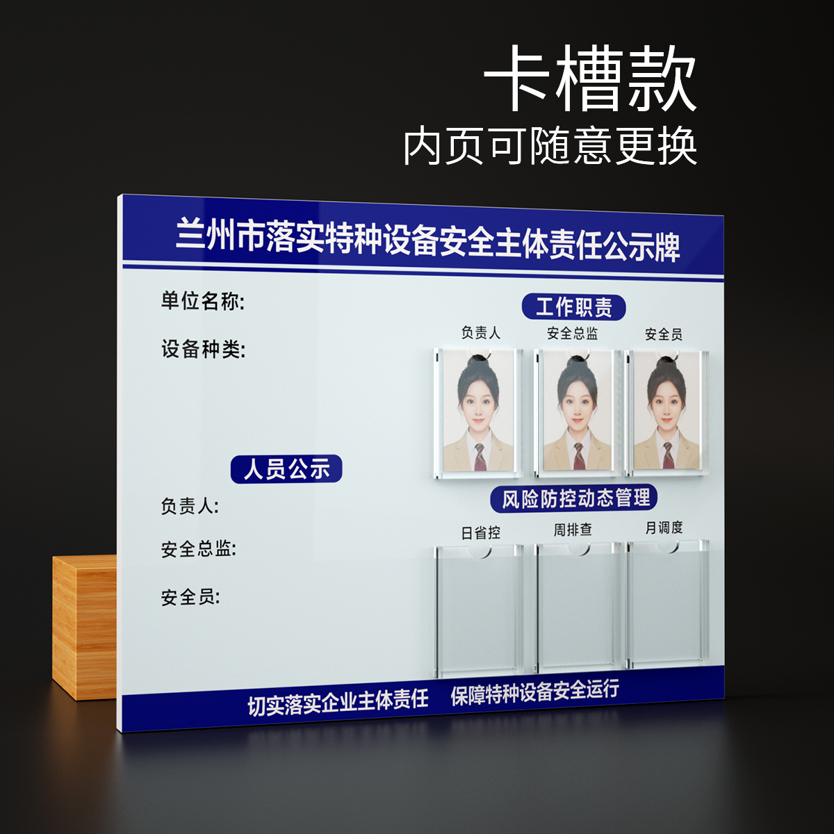 兰州市落实特种设备安全主体责任公示牌工作职责风险防控动态管理设备种类电梯维保标牌广告牌警示牌