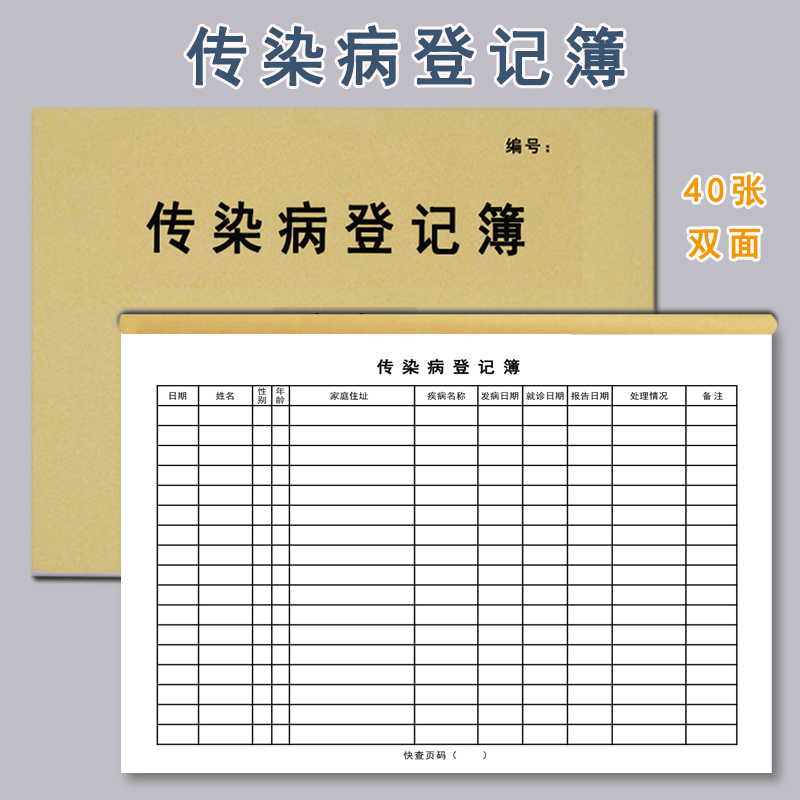 传染病登记簿传染病登记表社区门诊传染病记录本医疗机构传染病记录簿传染病例记录本门诊工作手册