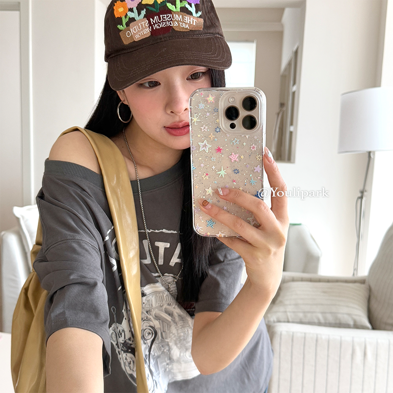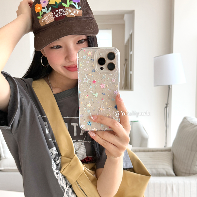 由里公园ins小众少女透明闪粉彩色星星15适用17pro苹果17ProMax手机壳iPhone16全包17新款14Promax保护套13韩