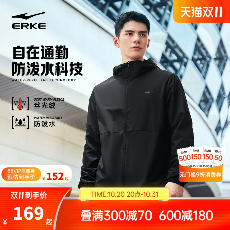鸿星尔克外套男2025秋冬新款男士防泼水冲锋运动夹克加绒风衣男装