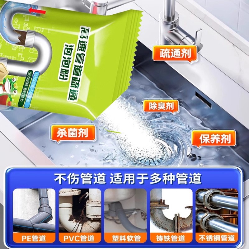 专用强力溶管道疏通剂泡泡粉厨房油污厕所下水管堵塞溶解神器高速