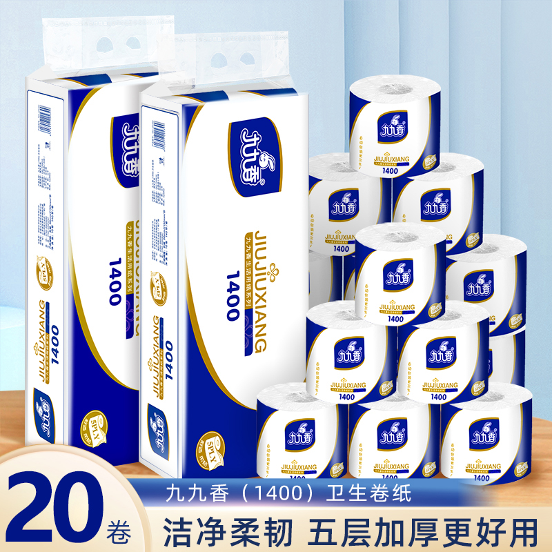 九九香蓝色卷纸20大卷卫生纸厕纸家庭装纸巾手纸5层加厚超市同款