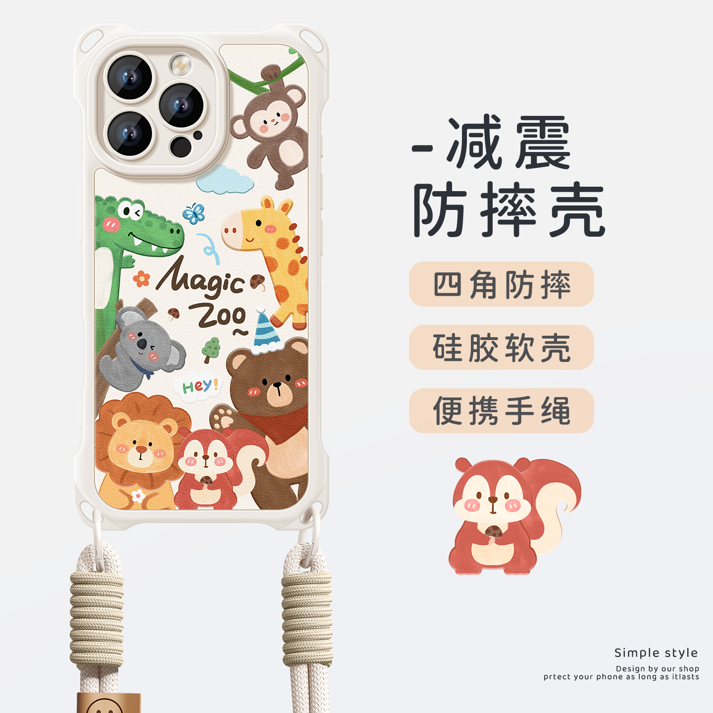 四角开孔挂绳手机壳适用苹果16Promax新款17pro防摔全包15promax手提14pro手链条软壳超薄16pro可提高级感air