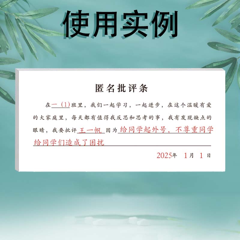 匿名批评条指出小学初中生上课调皮捣蛋不良习惯扰乱秩序表扬条班级好人好事互帮互助学习尊敬老师班级仪式感