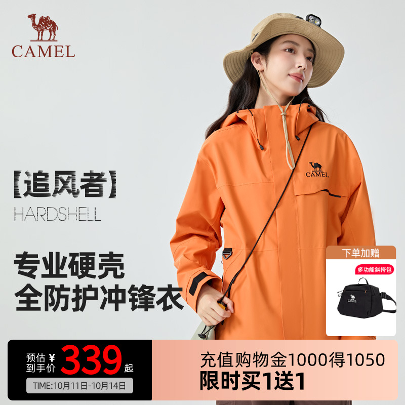 骆驼女装单层冲锋衣2025秋冬新款户外防风防水连帽立领男女款外套