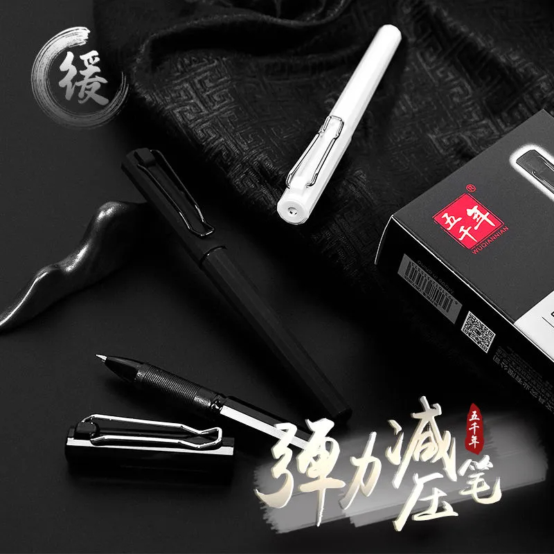 五千年弹力笔夹减压笔0.5mm子弹头黑色0.7办公签字笔学生刷题笔