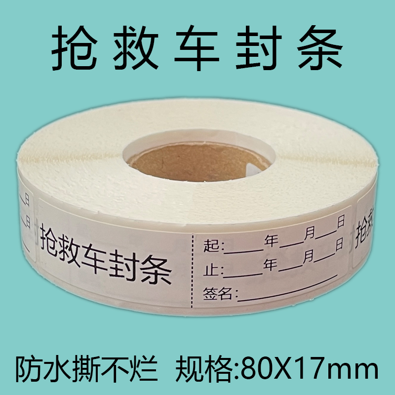 抢救车治疗车急救封条封存不干胶标签贴护理管道标识不粘胶标签贴