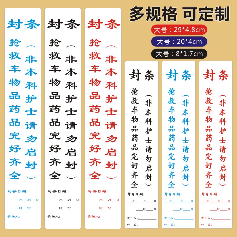 治疗车急救封条封存抢救车不粘胶标签护理导管标识贴不干胶标签Q