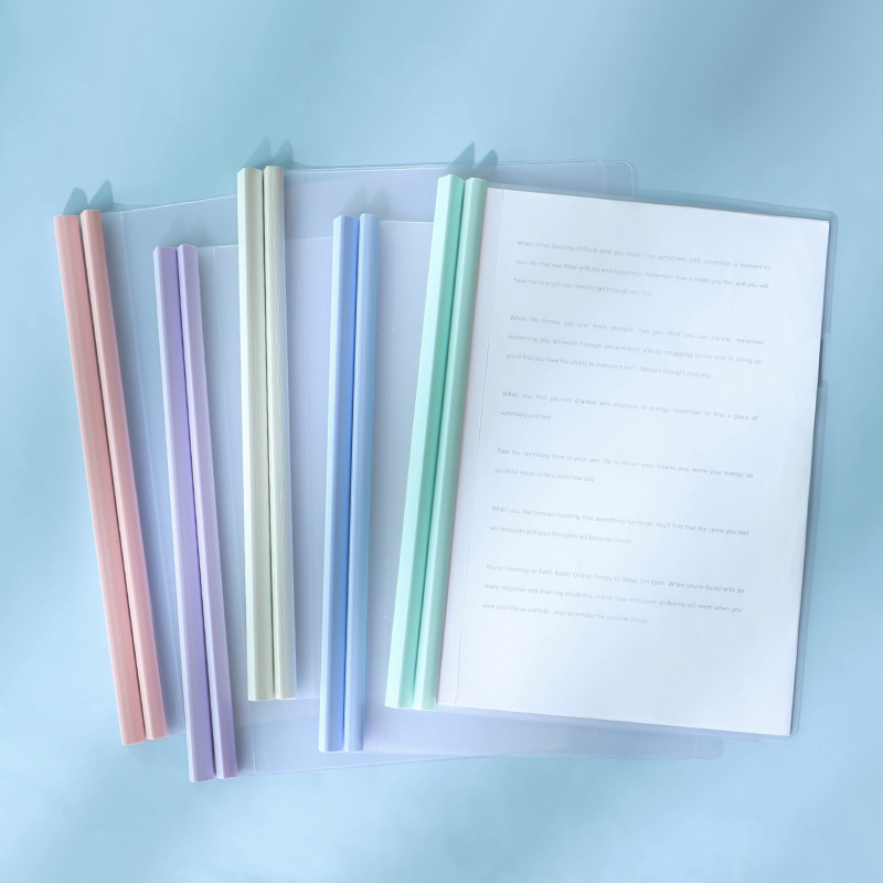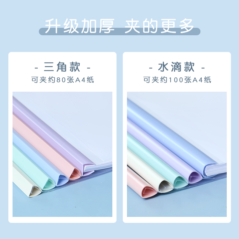 莫兰迪淡色系A4抽杆夹拉杆资料夹会议报告试卷学生水滴透明文件夹
