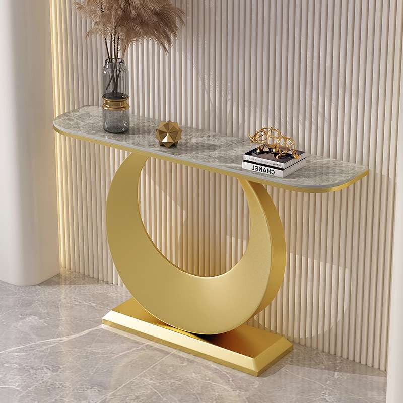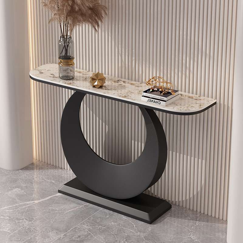 玄关桌端景台岩板网红意式入户柜简约现代轻奢半圆客厅靠墙供桌窄